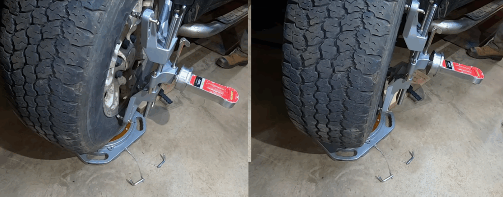 On considère deux axes sur lesquels il est possible de régler la roue : l’angle de carrossage, qui correspond à l’inclinaison verticale de la roue, et le pincement, qui désigne l’orientation horizontale de la roue vers l’intérieur ou l’extérieur du véhicule (voir ci-dessous).
